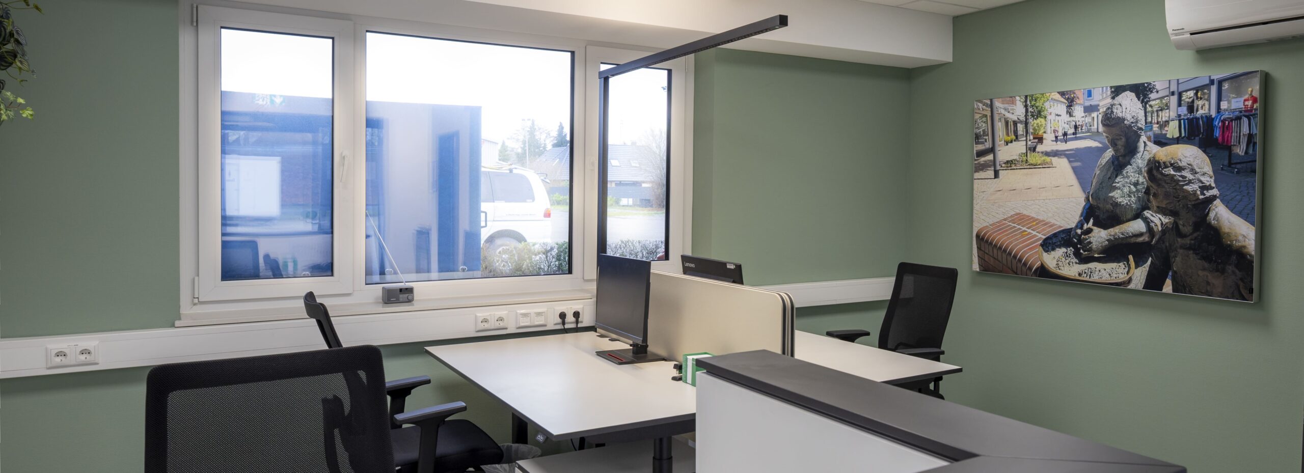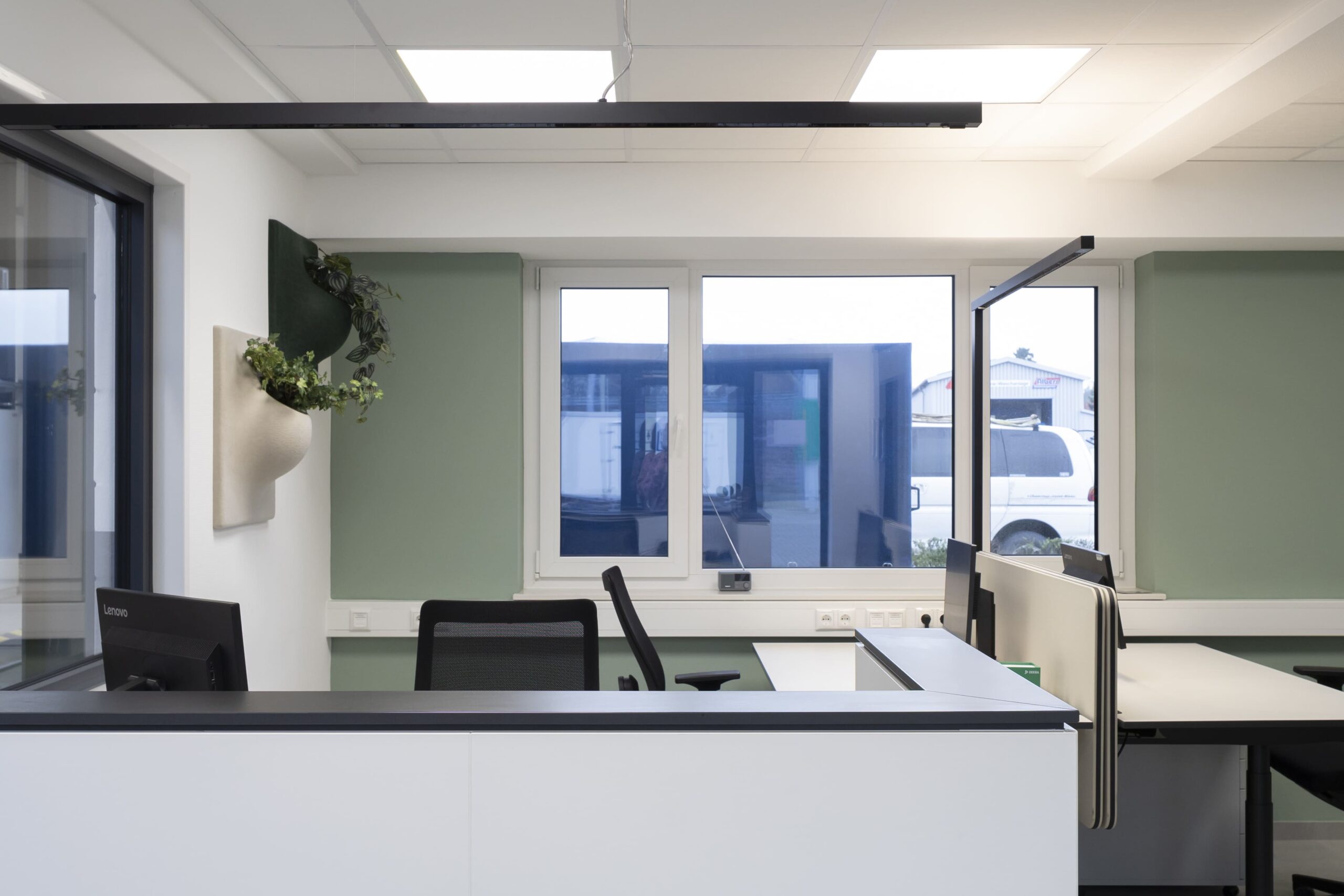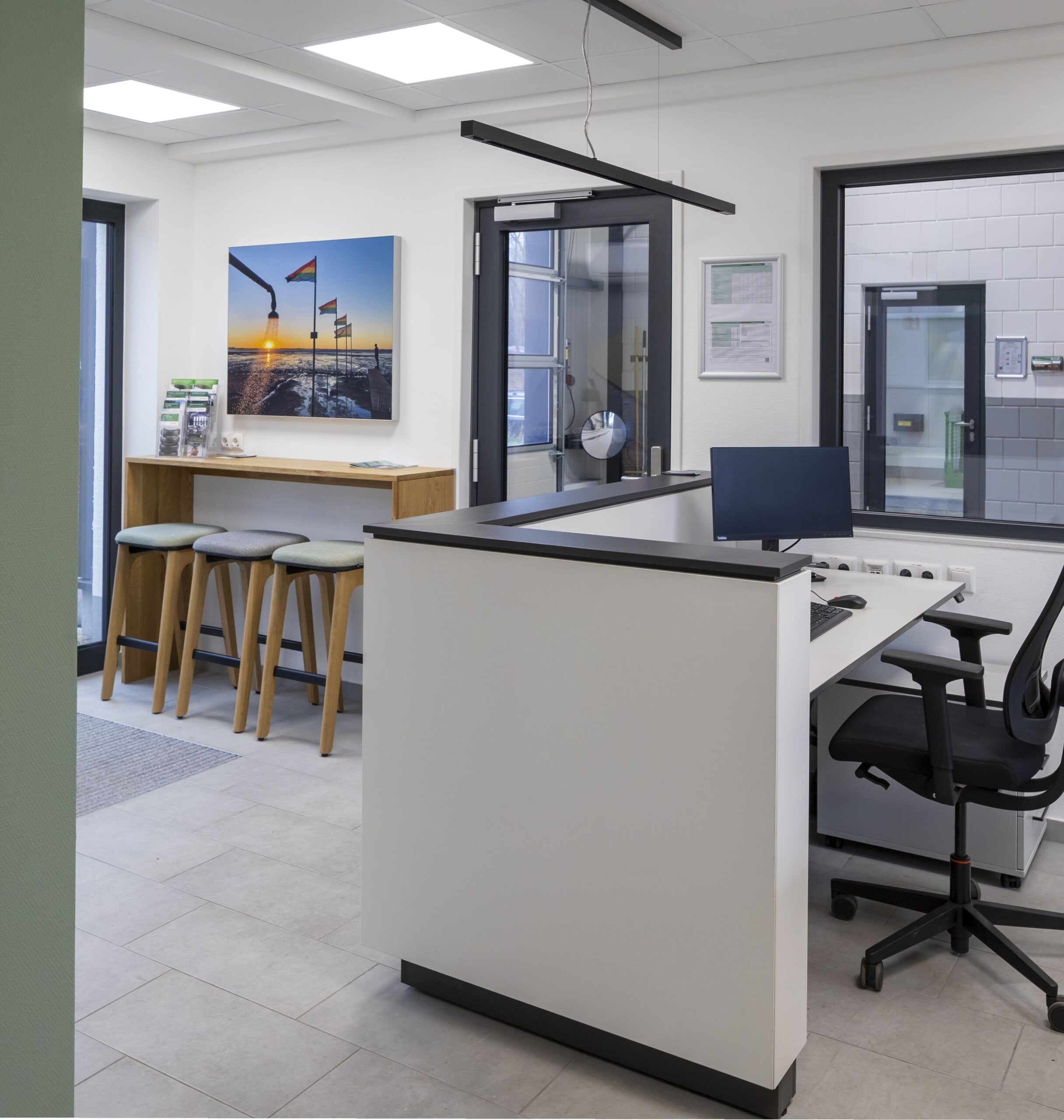 Unser Leistungsumfang umfasste die Planung und Ausstattung moderner Arbeitsplätze, eines funktionalen Warte- und Empfangsbereichs sowie eines Sozialraums für die Mitarbeitenden. Alle Bereiche wurden im Rahmen eines ganzheitlichen Einrichtungskonzepts aufeinander abgestimmt – mit Fokus auf Funktionalität, Ergonomie und eine klare, zeitgemäße Gestaltung.